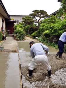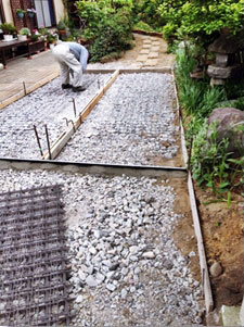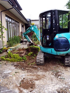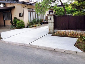 | 土間コンクリート打設、庭石、コンクリート、木、門扉撤去、敷石撤去、据付、2台駐車から4台駐車へ |